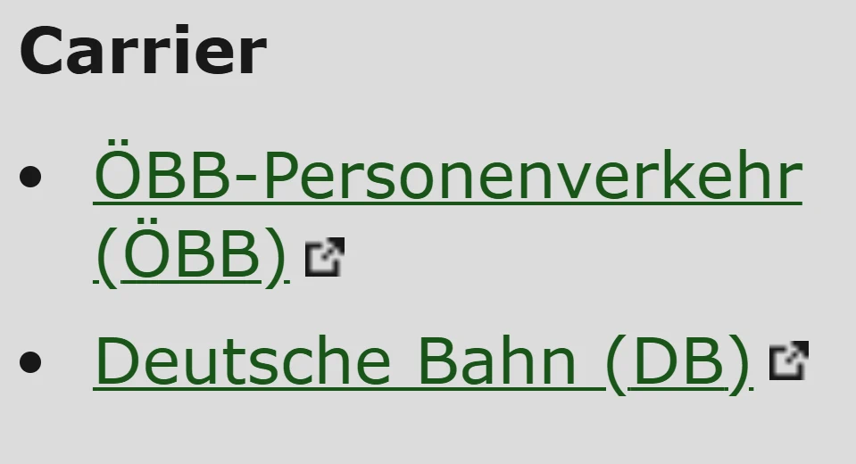 On the vagonWeb website, you can search for individual train numbers. However, it is not possible to search for connections. If several trains with the same train number exist, you must select the correct route of the train. Afterwards, the Carrier is displayed. For cross-border connections, multiple operators are shown.